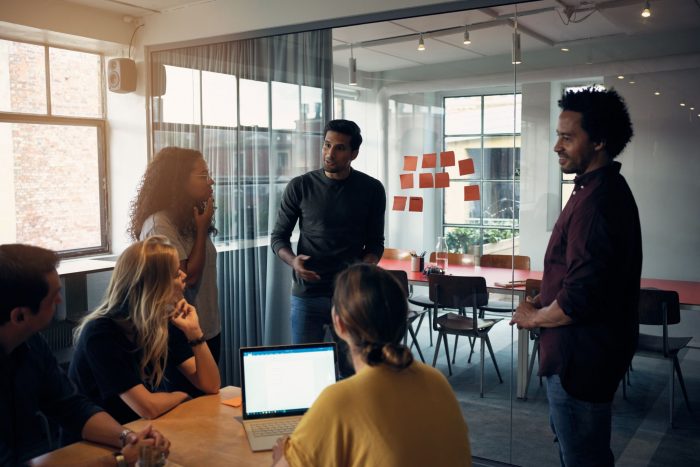 Em seguida, é importante desenvolver uma comunicação direcionada para transmitir valores essenciais em todos os níveis da empresa. Engajar líderes, gerentes e funcionários como responsáveis por representar valores essenciais vai manter os valores vivos a longo prazo.