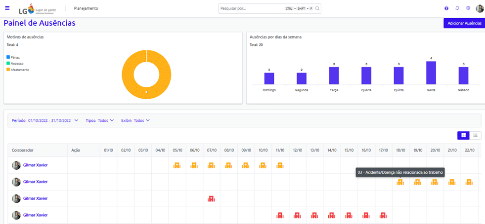 Uma das mais recentes aplicações é o painel de ausências. Nesse recurso, o gestor tem acesso a informações como férias, afastamentos e ausências, de forma centralizada e atualizada.