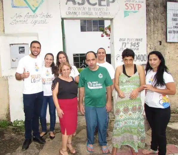 Renilda (primeira da direita para a esquerda) durante entrega das doações à Associação de Serviço à Criança Especial de Goiânia (ASCEP)
