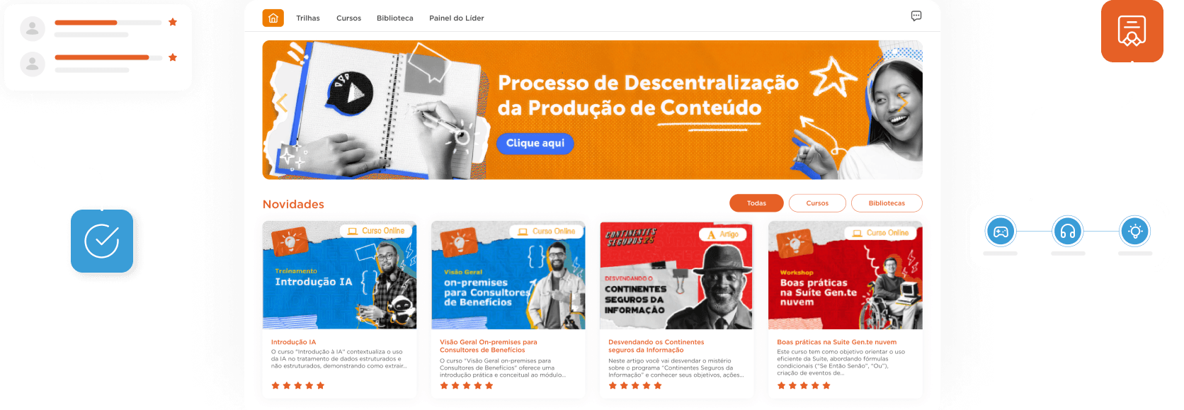 Com uma plataforma completa de treinamento corporativo, que oferece trilhas personalizadas, jogos, capacitação técnica e comportamental e gestão de desenvolvimento individual e coletivo.