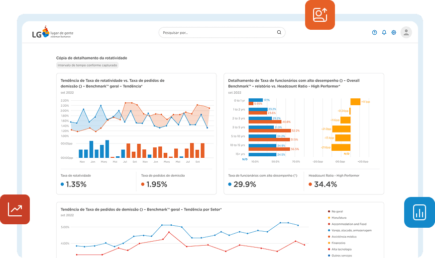 O People Analytics da LG lugar de gente é a inteligência que conecta dados de pessoas a decisões estratégicas. Ele reúne indicadores críticos de toda a jornada do colaborador, identifica padrões, revela causas e ajuda o RH a responder perguntas essenciais para a saúde da operação, com precisão, velocidade e clareza executiva.