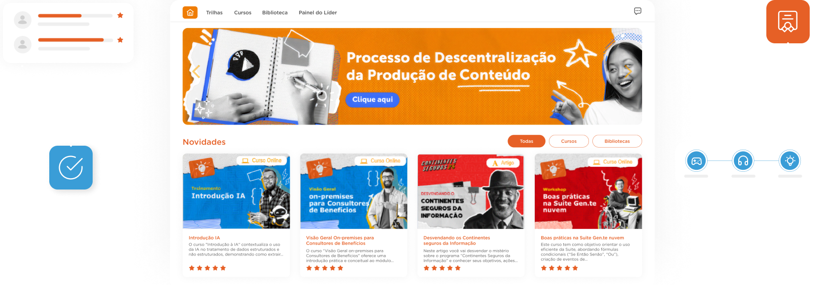 Com uma plataforma completa de treinamento corporativo, que oferece trilhas personalizadas, jogos, capacitação técnica e comportamental e gestão de desenvolvimento individual e coletivo.