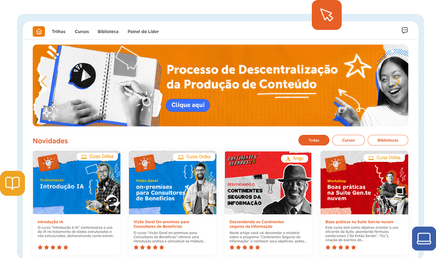 Amplie o alcance da capacitação com treinamentos digitais que unem autonomia, engajamento e escala. Estruture conteúdos estratégicos e monitore o aprendizado em tempo real.